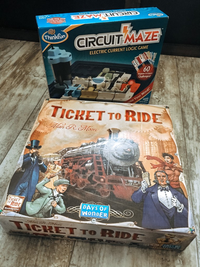SUPER FUN GAME ALERT! The adults and kids in our family enjoy this game! Brixton and I usually are on a team, but Knoxton (9 years old) plays by himself. The goal is to get the most points by building trains across North America. The company sells different versions, like Europe or Asia, so you can pick what would interest your family most. Maybe your kids are learning about Africa in school this year and you would like to reinforce geography, while incorporating fun game play.