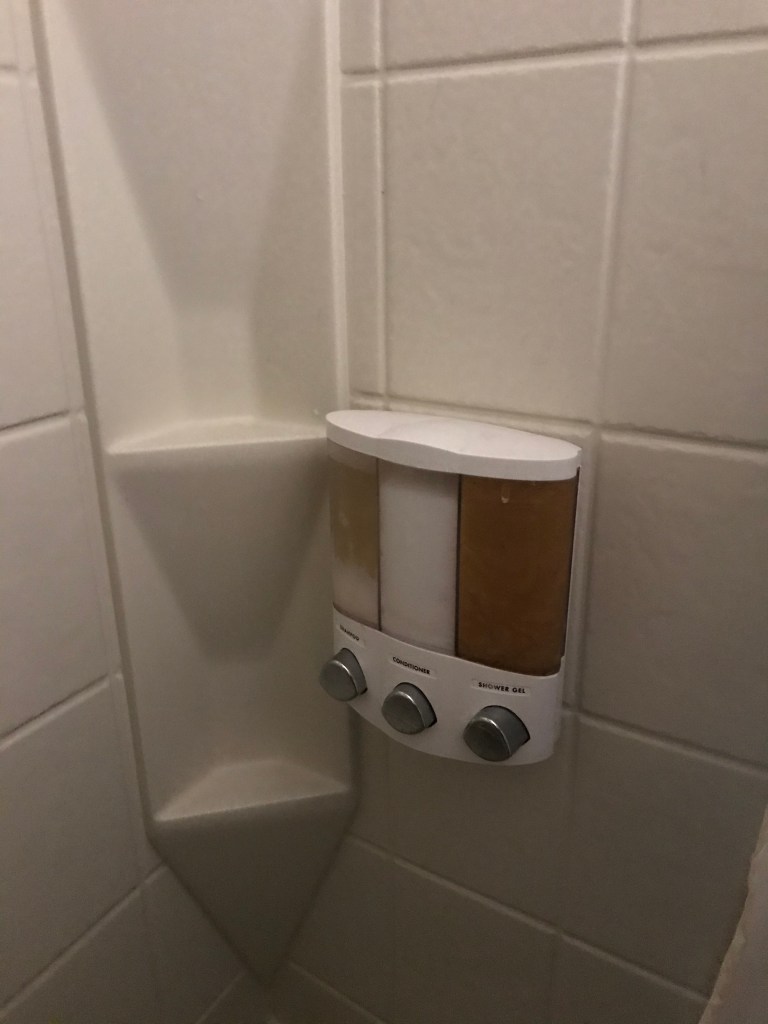 I was so sick and tired of seeing soap bottles in our shower. We really don’t have space for everyone to have their own favorite soap, so I bought this soap dispenser. It is small and compact and can hold a full size bottle of soap. I do keep extras under the bathroom sink, but I don’t have to worry about putting the bottles in the tub when we are ready to hit the road or bottles falling on me as I try to take a shower in our tiny tub. We also have this shower curtain which also stores things like the baby’s soap, toys, etc.